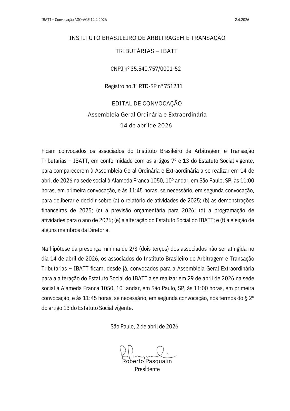 Fundado em 2019, o Instituto Brasileiro de Arbitragem e Transação Tributária nasceu com o propósito de modernizar a relação entre fisco e contribuintes.